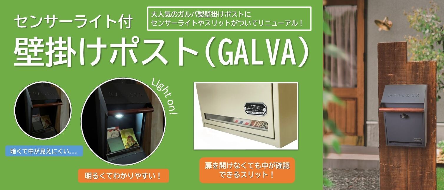センサーライト付壁掛けポスト(GALVA)