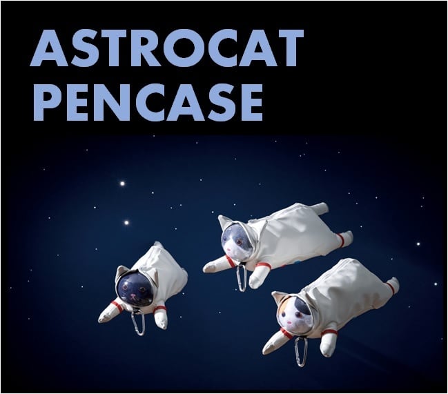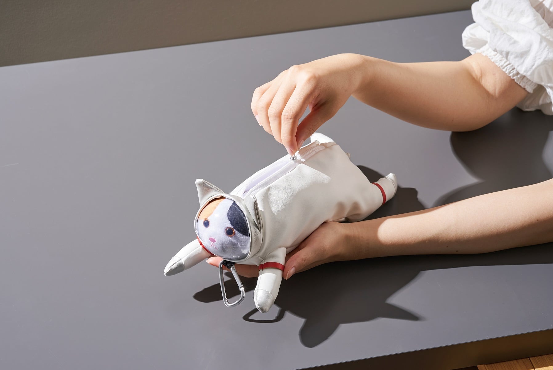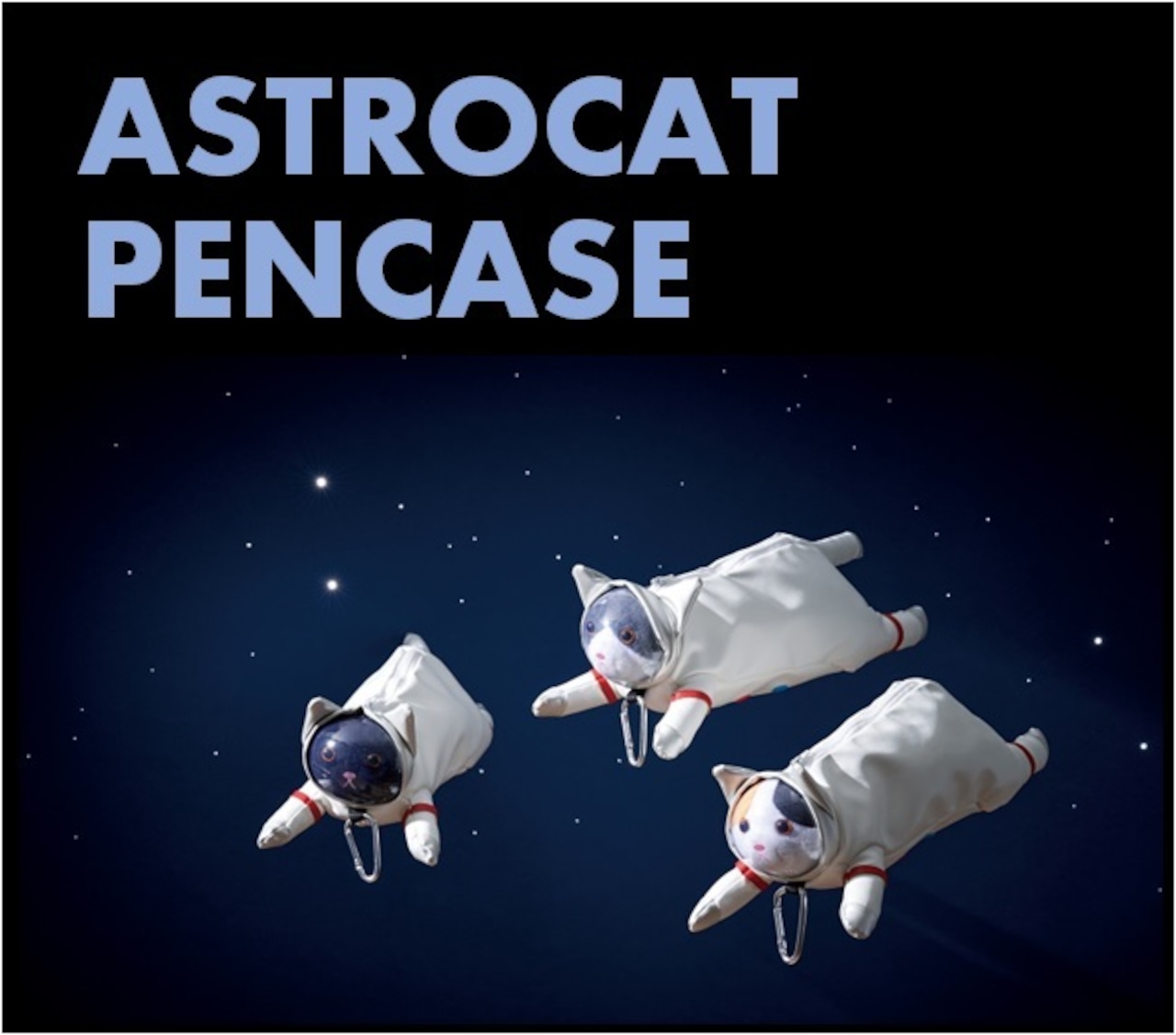 宇宙服を着た愛らしい猫たちが、大切な文具を守ります!アストロキャット ペンケースは、クロ、ハチワレ、ミケの3種類。持ち運びに便利なカラビナが付いているため、バッグやベルトに簡単に取り付けることができます。