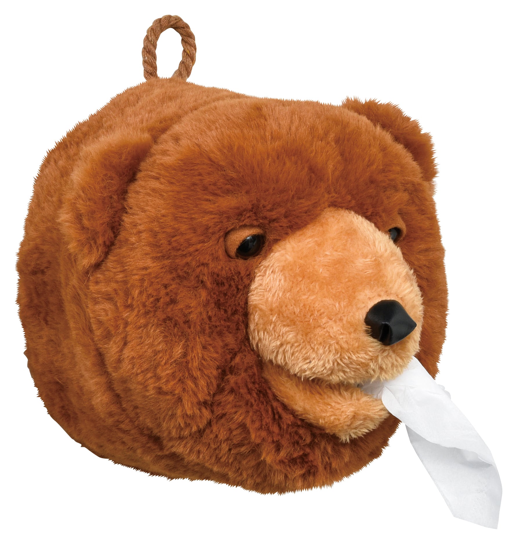 ティッシュを食べているような、インパクトたっぷりな動物のロールティッシュケース。壁掛け用のループが付いています。ぬいぐるみのような手触りで、お子様にも大人気?!